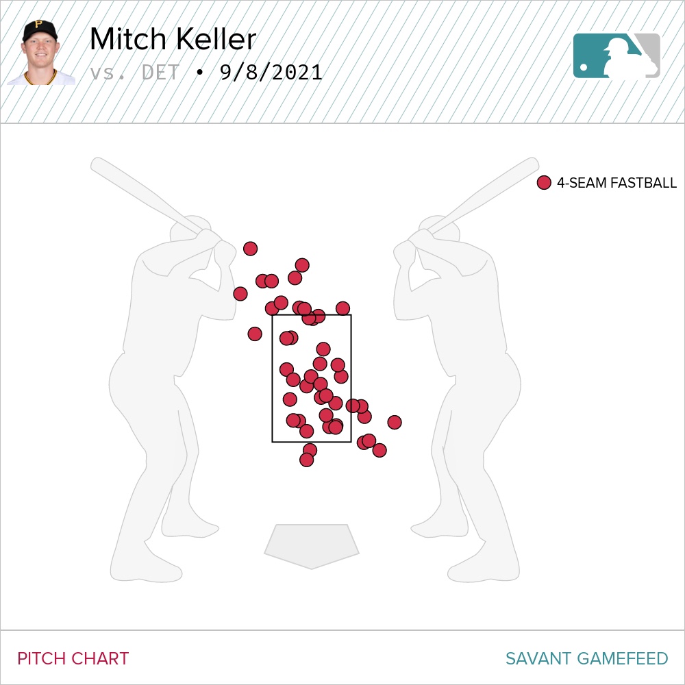 As I have written about before the main forecaster as to whether or not we actually saw good Mitch or bad Mitch, and whether or not steps have actually been made toward overall improvement, is Keller’s command of his fastball. All of his other pitches play off of his fastball. Even his slider, which he clearly can’t get batters to chase outside of the zone-and is only effective if it somewhat mirrors his fastball-plays off the accuracy of his main pitch.