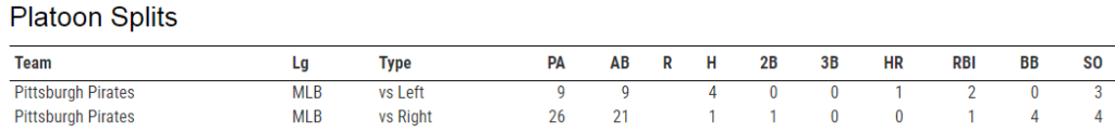 The Pirates have tried to hide him from lefties early on here, now check out his splits.
