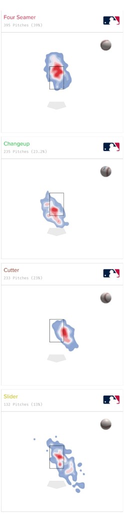 His arsenal consists of a low-90s fastball, high-80s cutter, low-80s changeup and a low-80s slider.