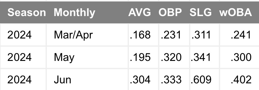 Pepiot had a decent start to his career with the Rays, posting a 3.88 ERA through his first 9 games but he’s REALLY struggled lately with a 6.48 ERA in 3 starts this month with an OPS of .942.