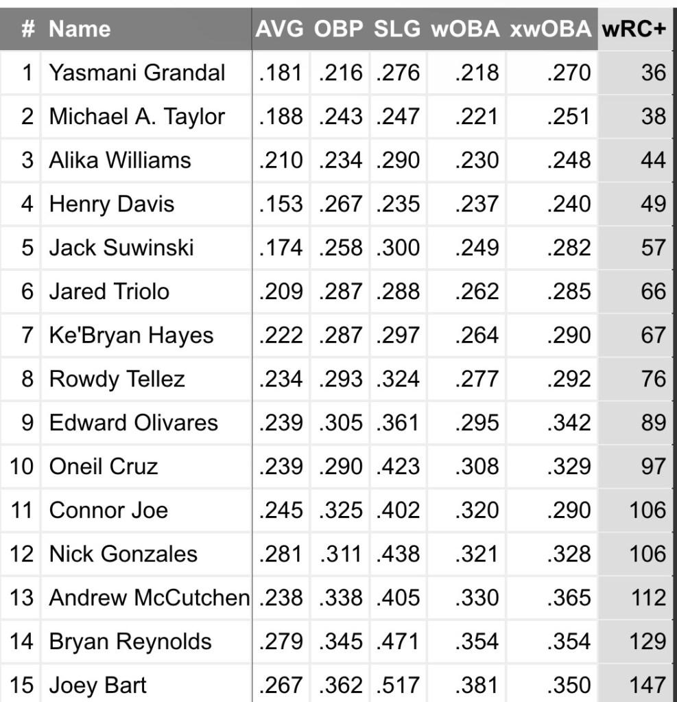 Offense is down across the board, granted, but the Pirates have been at or near the bottom in most every statistical category. And they have 7 hitters who have 60+ plate appearances and posted under 70 wRC+ and sub-.600 OPS.