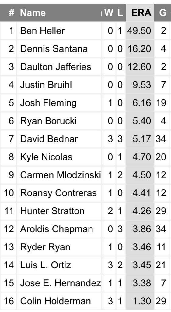 Granted, there were some early season struggles by David Bednar (5.17 ERA in 31.1 innings) and Carmen Mlodzinski (4.50 in 18) but some other relievers have provided negative net value out of the pen with only Colin Holderman (0.7) and Hunter Stratton (0.6) providing more than 0.2 fWAR in the first half of the season.