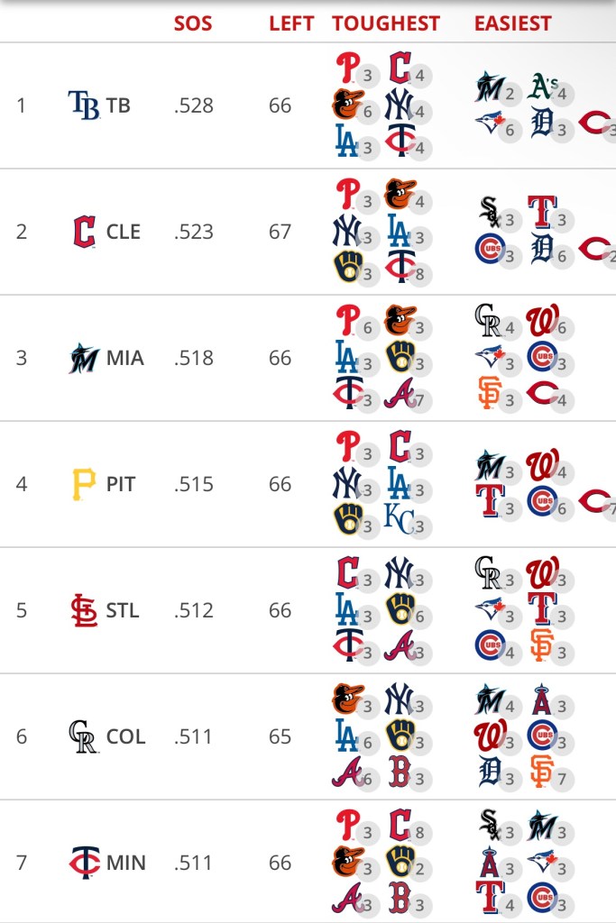 That’s a stretch of 12 games in 13 days over 3 cities/states and a combined opponent record of 211-174 (a .548 win%), and that’s not including another series at home against Arizona and 3 games hosting the San Diego Padres before heading west for 3 in LA versus the Dodgers and 3 in San Diego.