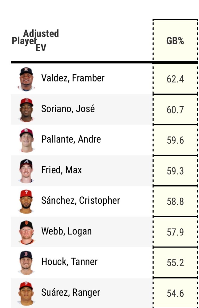 Only Framber Valdez of the Astros and Jose Soriano of the Angels have a higher ground-ball percentage among qualified starting pitchers than Pallante, who also is one of the best in baseball at generating weak contact in both average exit velocity (86.6MPH – 10th lowest with minimum 200 batters faced) and barrel rate (4.5%, tied for 3rd lowest in MLB).