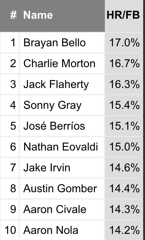 While his sinker has been hit the hardest and most often, his curve and 4-seamer are both prone to get elevated and driven out of the park as his 14.6% HR/FB rate is 7th among all qualified starting pitchers.