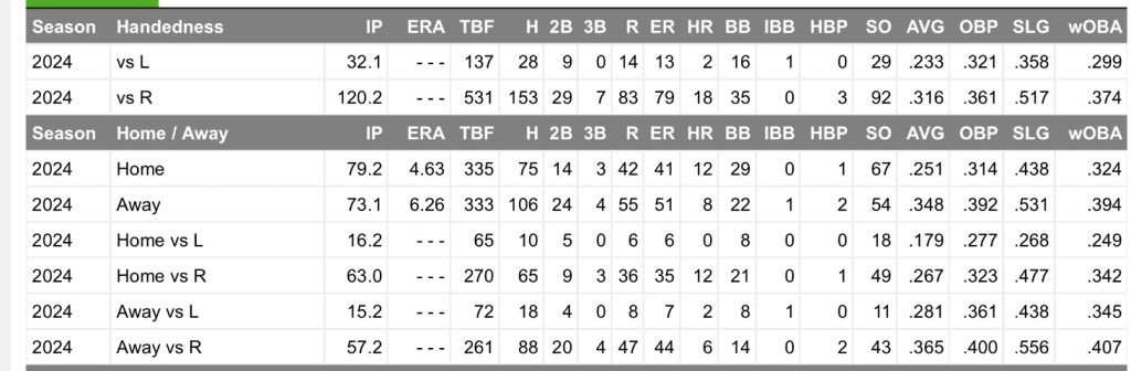 Corbin is only successful if he can generate ground-balls as he throws most of his pitches down in the zone but his sinker and cutter have a tendency to hang up and get CRUSHED with some high exit velocity numbers.