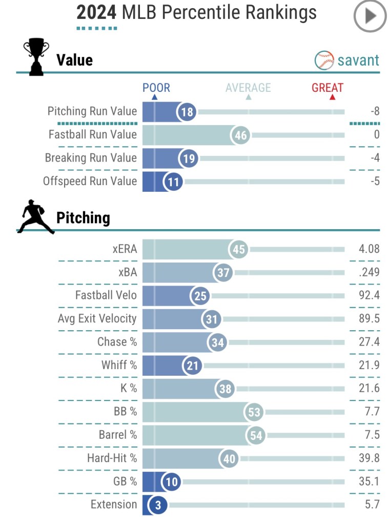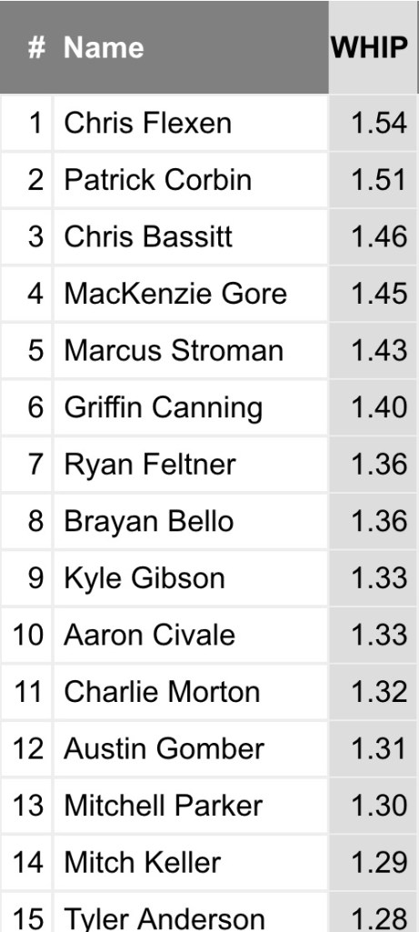 Entering with 4.53 ERA between Tampa and Milwaukee, Civale has sub-par overall peripherals who doesn’t have great “stuff” but grinds through starts even with a bottom ten WHIP among all qualified starting pitchers.