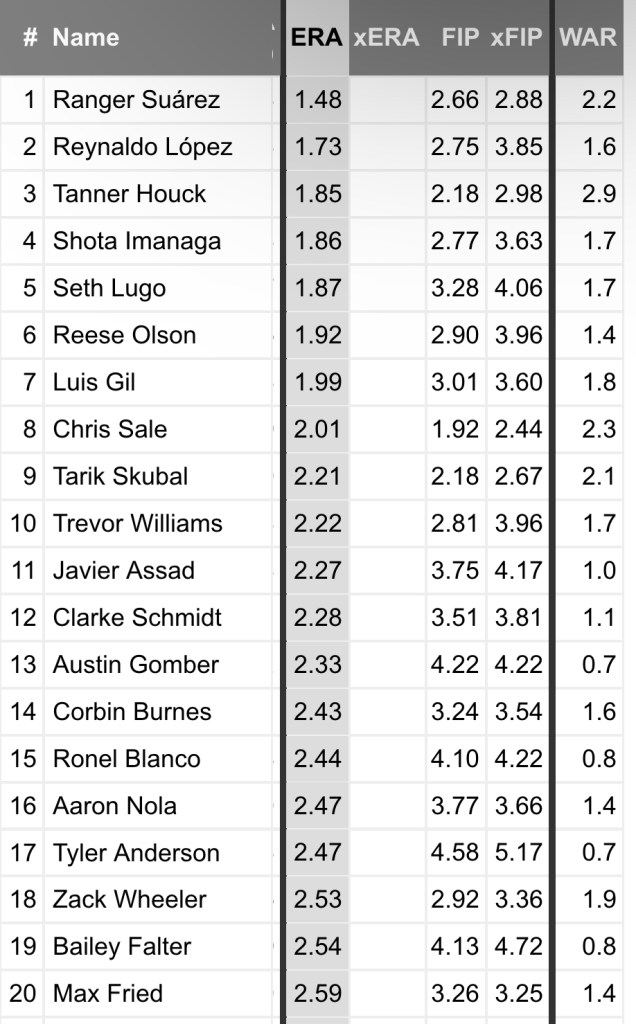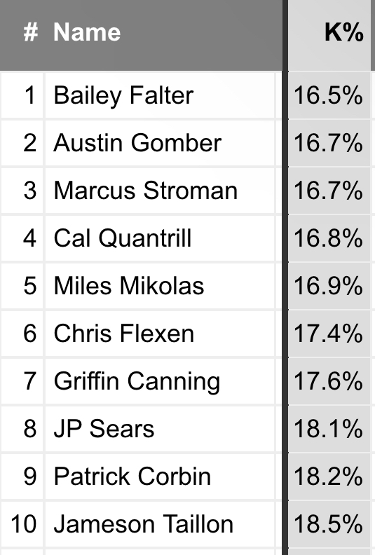 Did I say low strikeout rate? It’s actually understating it. No one who pitched as many innings as Falter did in 2024 had a lower strikeout rate than he did.