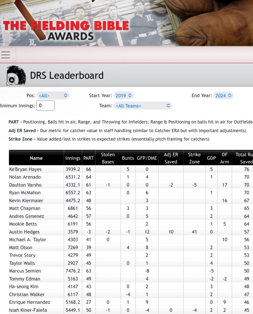Despite the offensive issues, Hayes was still producing with the glove. In fact, even with missing significant time due to injuries over the past few years, Hayes has been the best defender in MLB since his debut in 2020. Actually, I’ll do you one better: Go back to 2019 – a year in which Hayes spent zero innings on a major league roster – he still leads the pack by 6 or more Total Runs Saved.