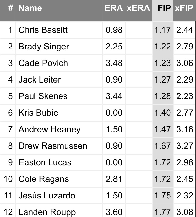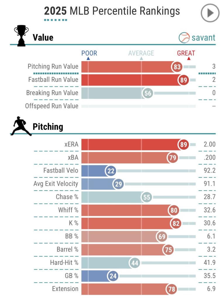His ERA has him ranked 35th among starting pitchers with 10+ innings, his xFIP is the 21st lowest among this group and his FIP ranks 2nd best, indicating potential sustainability behind his early 2025 success.