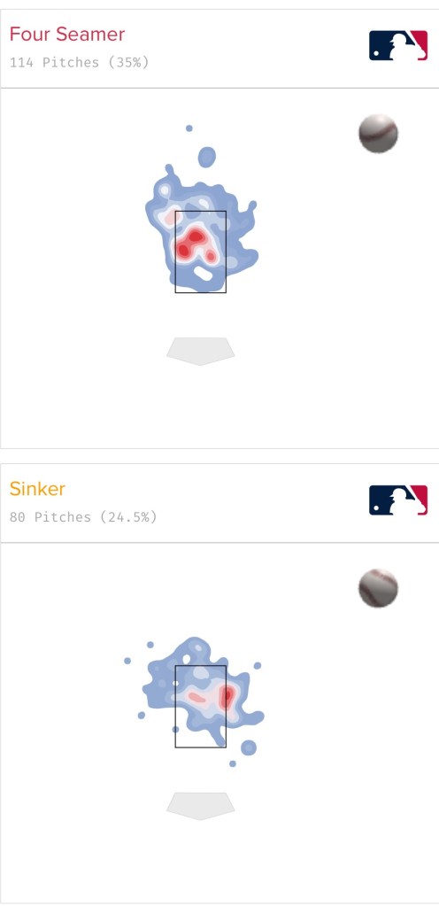 For right handed hitters, his sinker can often hang over the plate with similar spin to his fastball. Opposing batters have 7 hits in 25 at-bats against the offering, allowing pull-happy hitters to drive balls down the left field line.
