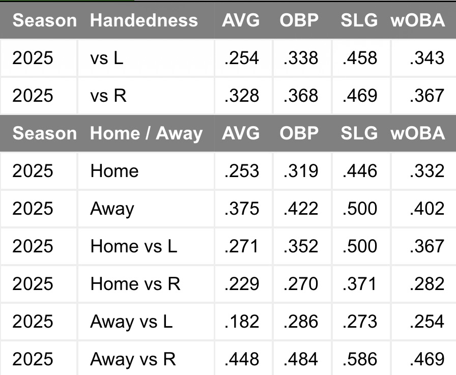 Righties have been surprisingly better against Cease than lefties this year, especially away from the friendly confines of Petco Park.