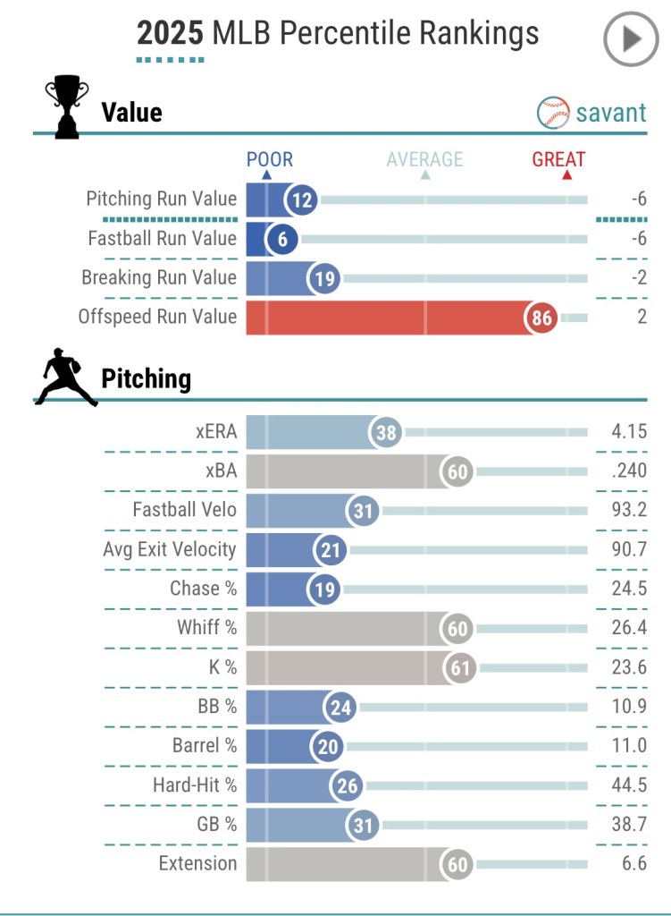 That said, the underlying metrics aren’t favorable for Gallen returning to his ace form as he is essentially average or below average in nearly every observable category.