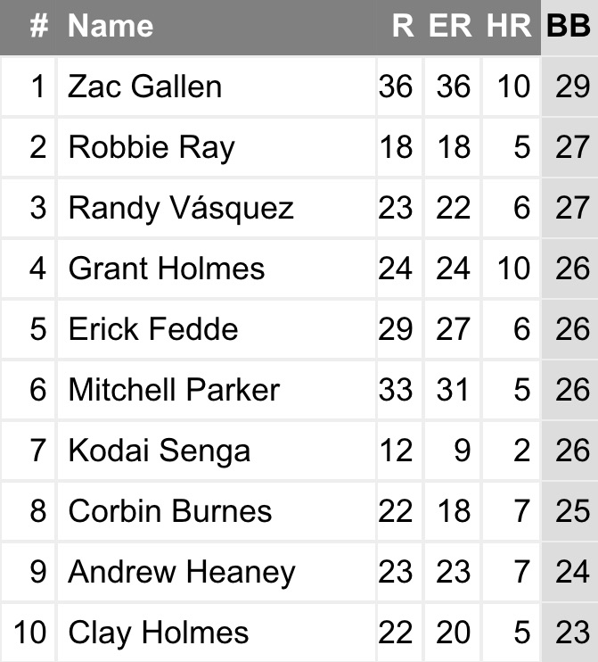 Just two years removed from being a Cy Young finalist, Gallen has tumbled quite a bit statistically, entering today with a 5.25 ERA, 1.36 WHIP with 10 home runs and an NL-leading 29 walks and 36 earned runs allowed.