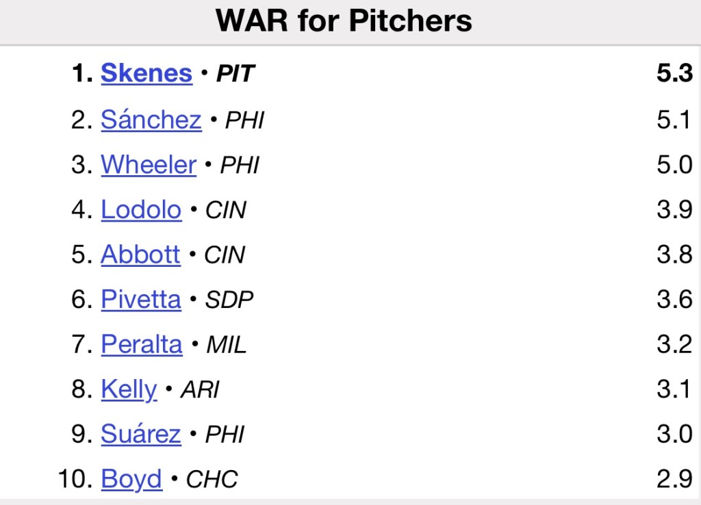 However, the underlying metrics don’t back up the sustainability of this production as he also has the 4th lowest BABIP (.248) with similar hard hit% (43.8%) and average exit velocity (90.6 MPH) numbers to last season (40.9% and 90.5 MPH, respectfully) when he had a 4.03 ERA and a .273 BABIP.