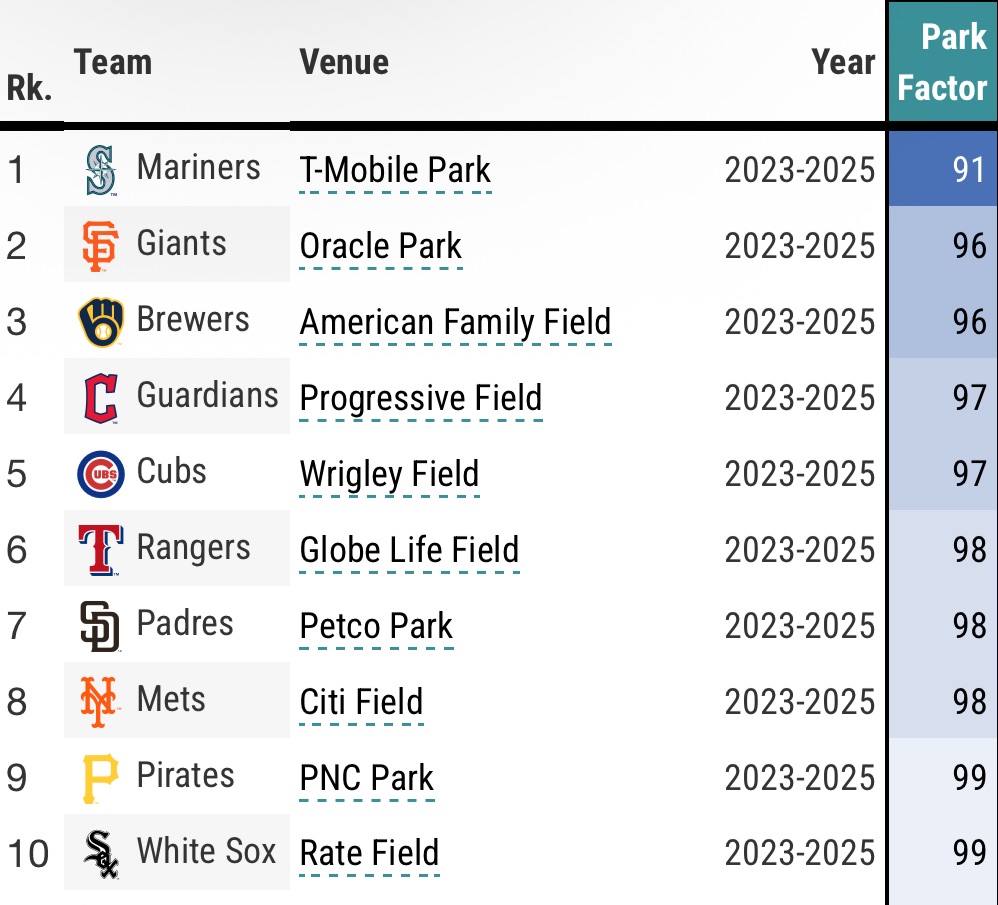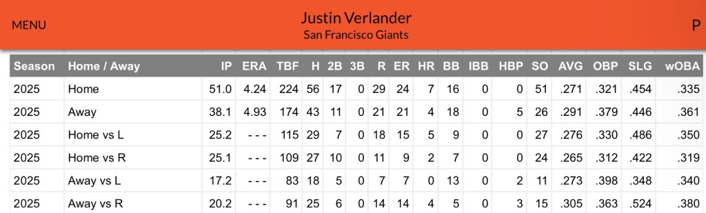 The other side is how different his split are on the road compared to at home. Oracle Park – where the Giants play their home games – is considered one of the most pitcher-friendly parks in MLB. Over the past three years (excluding the Athletics and Rays parks due to this season), Oracle ranks as the 2nd most power-suppressing location behind only T-Mobile Park in Seattle.