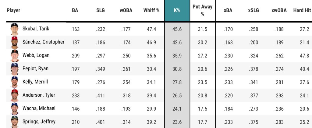 Righties have also found success against the fastball with a .300 batting average and .315 wOBA when seeing Chase’s heater but hitters from both sides of the plate are struggling against his slider, posting a meager .213 batting average against it and whiffing at a 44.3% clip.