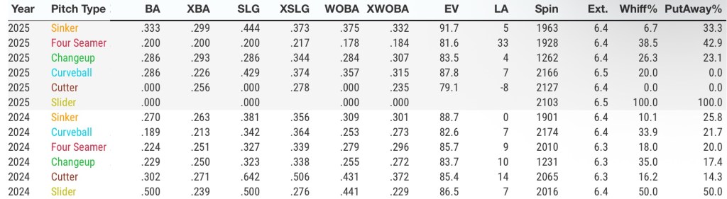 His current Average is .176 and his BABIP is .253, meaning even if he’s getting unlucky, it’s not so unlucky that there is some kind of hidden good here.