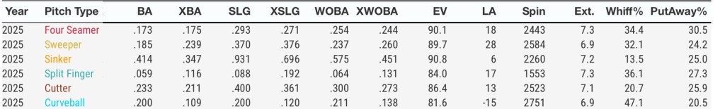 His expected on base average is .255, 3rd percentile in the league. At .202 his expected Batting average is in the 4th percentile league wide. .276 his expected SLG the 2nd percentile. Go down the list, the only thing he’s above average at aside from fielding is his chase rate.