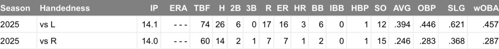 Be ready to hit the first thing you see in the zone, period. These numbers are so stark, it’s impossible to believe they haven’t changed anything here. At bat after at bat he takes strike one, maybe even two and then he goes about protecting the zone or trying like hell to work a walk.
