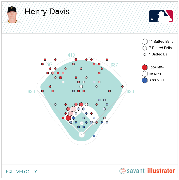So that crazy high exit velocity up off the plate outside isn’t translating, but it does have potential if he starts actively trying to hit it more often. Especially in those RBI opportunities I was speaking to up there in point 1.