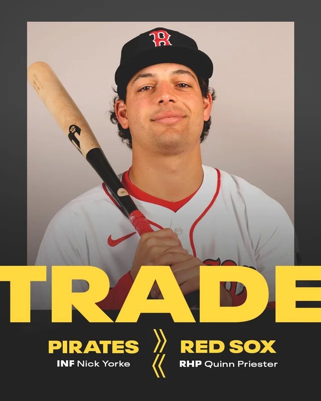 7-29-2024 – By Corey Shrader – @CoreyShrader on X The Pittsburgh Pirates have swung their first deal at the 2024 trade deadline. In a somewhat rare, “prospect for prospect” trade, the Pirates are sending starting pitcher Quinn Priester to the Boston Red Sox in exchange for middle infielder, Nick Yorke. Pirates fans have just begunContinue reading “Pirates Strike A Deal With Boston”